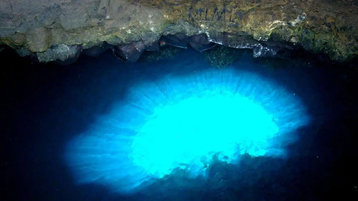 O Olho Azul é uma piscina natural com águas de cor azul-turquesa e uma caverna subaquática com vários metros de profundidade.
